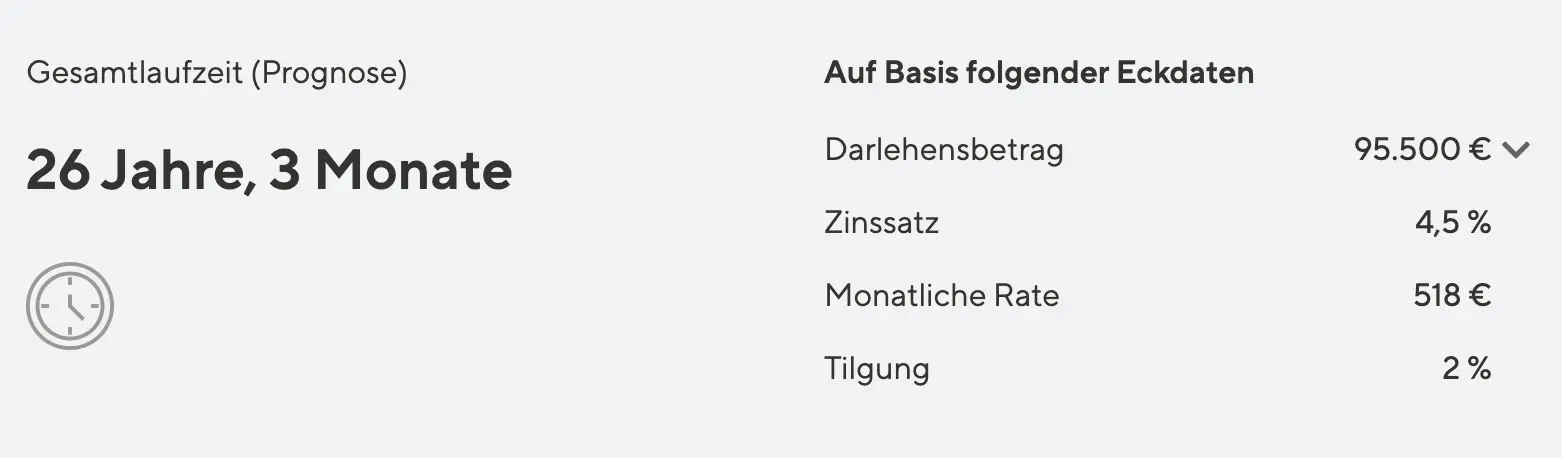Im Folgenden kannst du mit unserem Rechner ein Kreditszenario für deine persönliche Situation berechnen. Zusätzlich erhältst du weitere Tipps, die dir helfen können, die monatlichen Raten für deinen Immobilienkredit zu bewältigen.