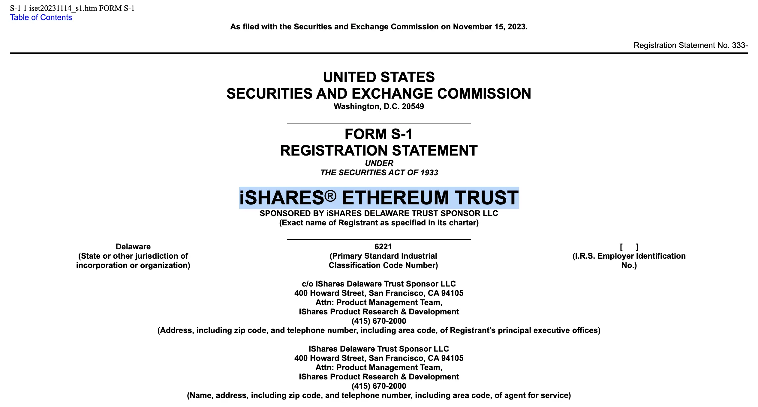 Blackrock, der weltweit größte Vermögensverwalter mit einem verwalteten Vermögen von rund 9 Milliarden US-Dollar (u.a. iShares ETFs), hat am 15. November 2023 bei der SEC die Zulassung eines Ethereum ETFs beantragt.
