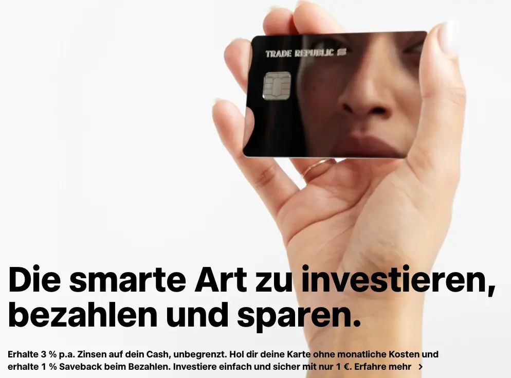Das Tagesgeldkonto bei Trade Republic ist gleichzeitig Verrechnungskonto für das kostenlose Wertpapierdepot, das zu den besten in Deutschland zählt. Hier kannst du zu minimalen Kosten handeln und über 2500 ETFs und 10.000 Aktien kostenlos besparen.