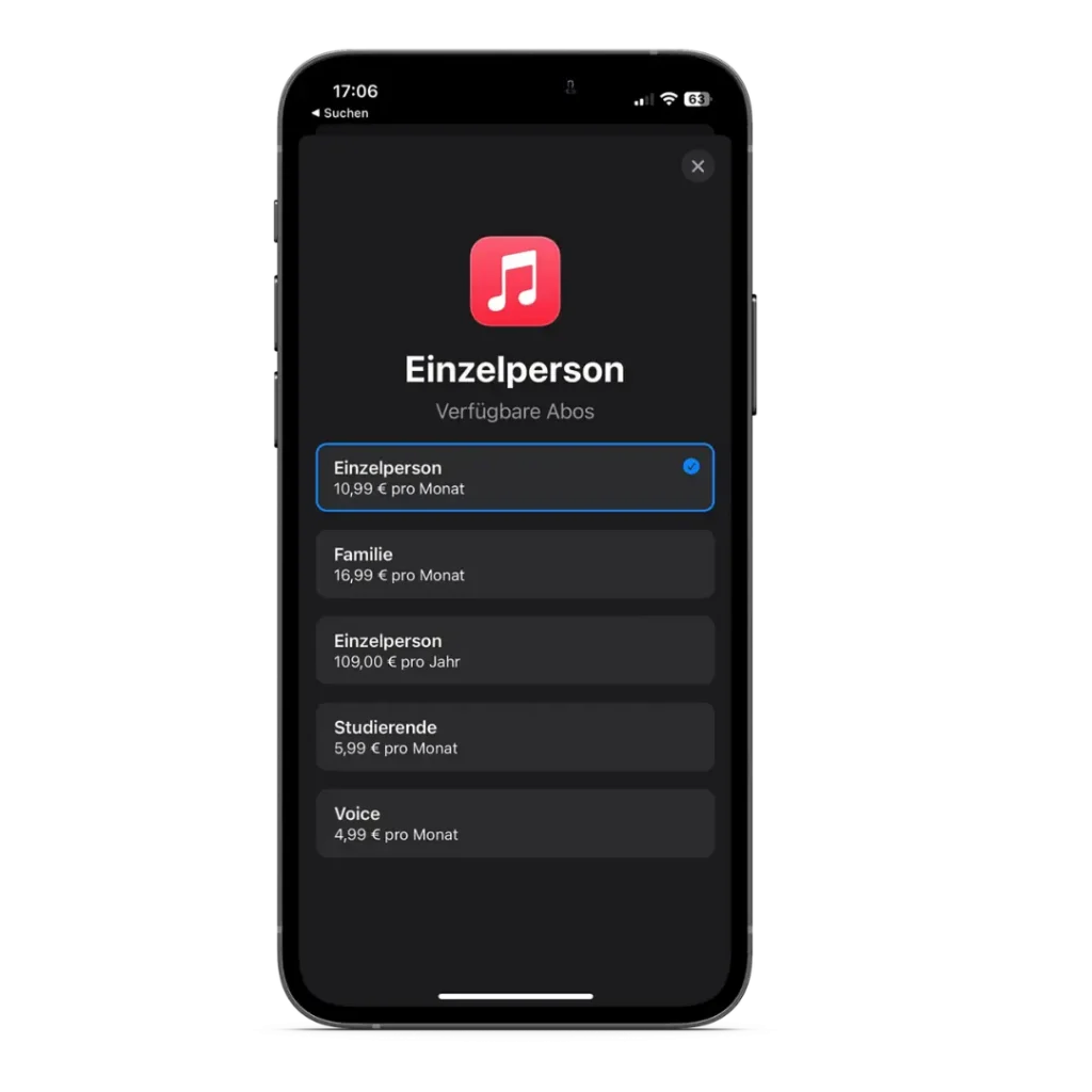 Apple Music lässt sich auf die jährliche Zahlweise umstellen, indem du auf deinem iPhone unter Einstellungen > Apple ID > Abonnements > Apple Music Abo > Alle Abos anzeigen gehst. Dort wird dir die jährliche Zahlweise dann vorgeschlagen.