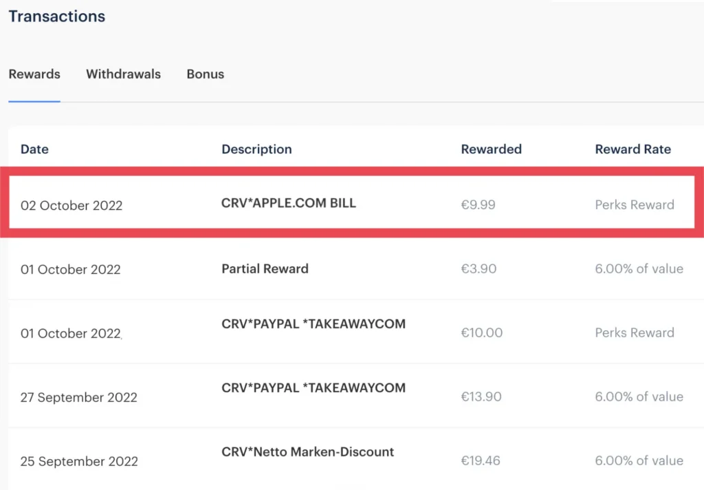 | Plutus Cashback (3 %) | 0,00 € | 0,00 € | 0,03 € | 0,21 € |