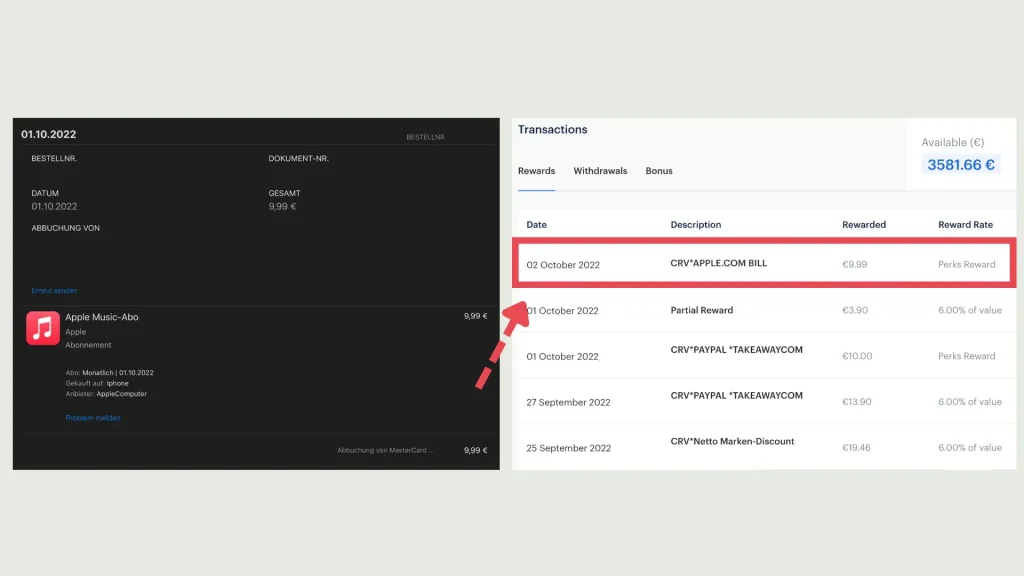 Schritt 4: Das Cashback wird dir bei der nächsten Abrechnung deines Apple Music Abonnements automatisch gutgeschrieben und steht dir dann zur freien Verfügung. Mit dem Cashback kannst du z.B. die Plutus Karte wieder aufladen und ausgeben.