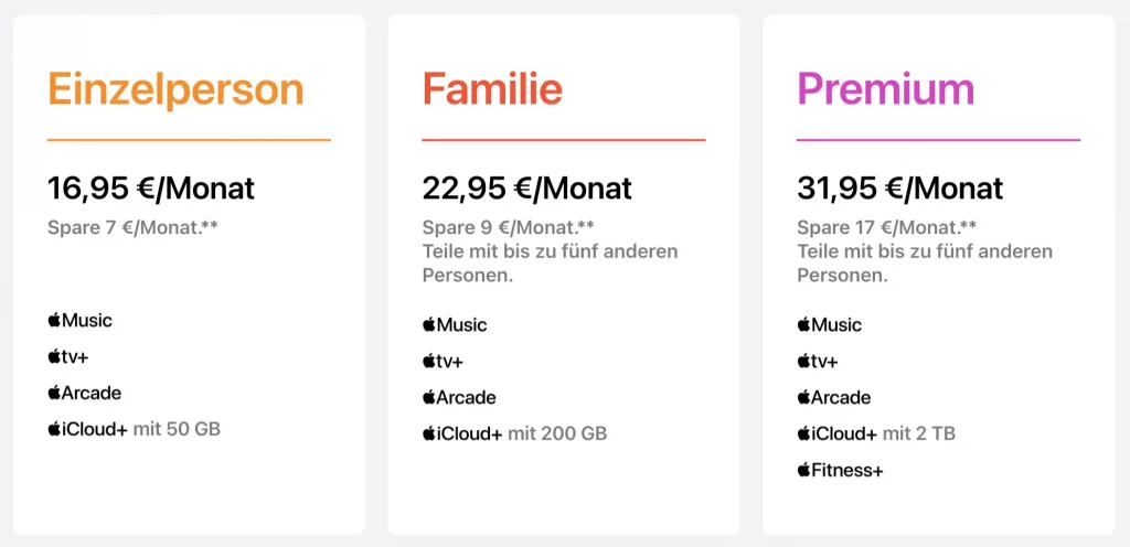 | APPLE ONE EINZELPERSON | FAMILIE | PREMIUM | |