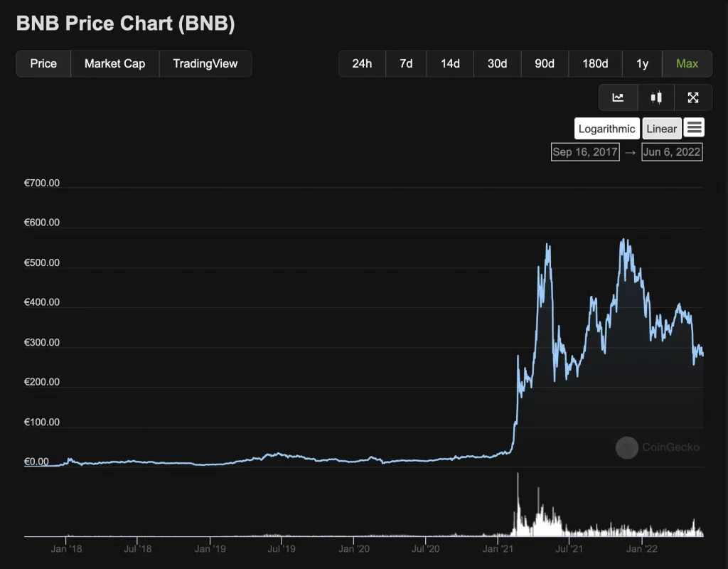 - Das Allzeithoch für Binance war 586,61 €. Basierend auf dem Allzeithoch beträgt das mögliche Kurspotential von Binance 8,61%.