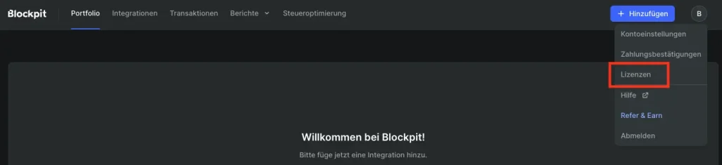 Schritt 2: Wenn du alle Krypto Transaktionen in Blockpit erfasst hast, kannst du unter „Profil“ > “Lizenzen” das entsprechende Paket kaufen, das du für die Erstellung deines Steuerberichts benötigst.