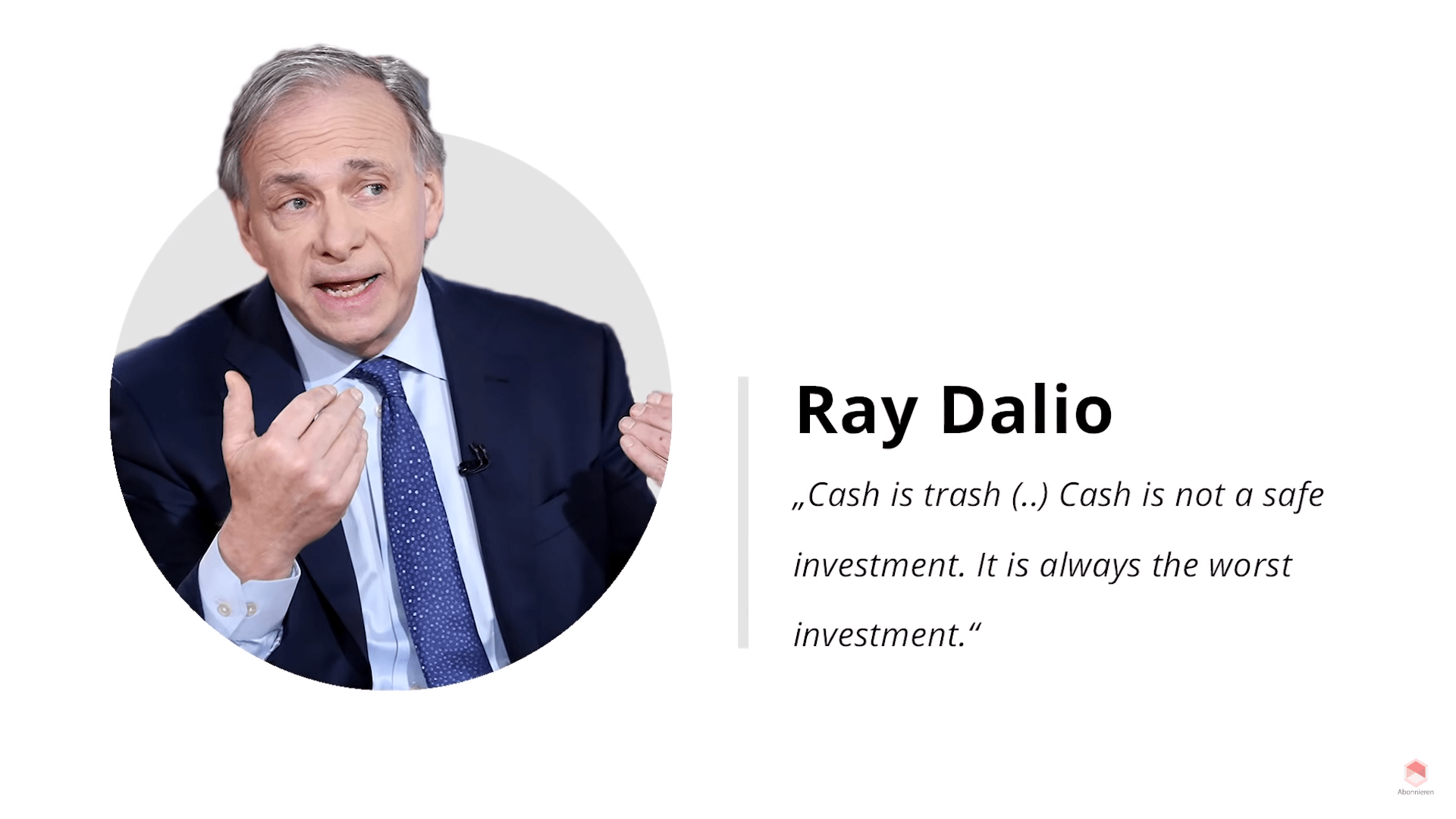 Denn hier meldet sich die Gefahr der Inflation. Dies ändert zwar nicht nominal den Wert des Geldes. 10.000 € vor fünf Jahren sind heute immer noch 10.000 €. Real hast du in diesem Zeitraum auch schon ca. 500 € an Kaufkraft verloren. Das ist schon mal ein kleiner Urlaub. Diesen Umstand hat Ray Dalio bereits Anfang des Jahres vor der Krise verdeutlicht: „Cash is Trash“.