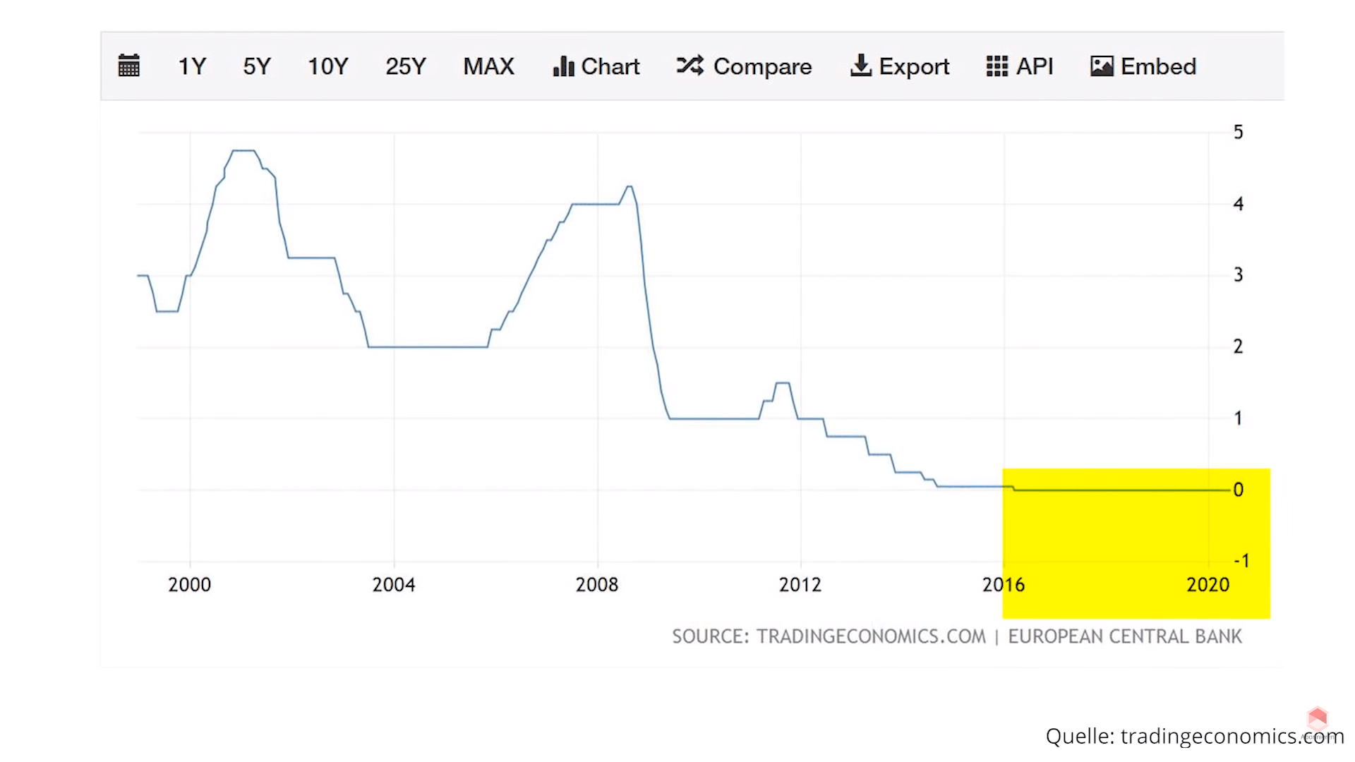 Viel davon landet im Aktienmarkt, der auf die erhöhte Nachfrage mit Kurssteigerungen reagiert. Als weitere Maßnahme wurden zudem unbegrenzte Anleihenkäufe beschlossen. Die Notenbank Fed hat ihren restlichen Spielraum zur Leitzinssenkung genutzt. Um die getroffenen Maßnahmen nicht vorzeitig abzuwürgen, werden die Zinsen, die im EU-Raum bereits seit 2016 auf dem Nullniveau verharren, in absehbarer Zeit vermutlich nicht steigen. Also gibt es keine Zinsen auf unser Erspartes.