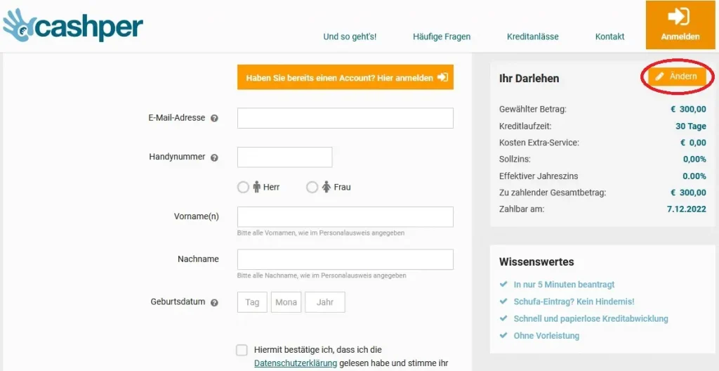 Hast du deinen ersten Kredit jedoch vollständig zurückgezahlt, kannst du dich wieder bei Cashper anmelden und einen neuen Kredit aufnehmen. Alle weiteren Kredite werden dann allerdings zu einem Zinssatz von 7,95 % p.a. vergeben.