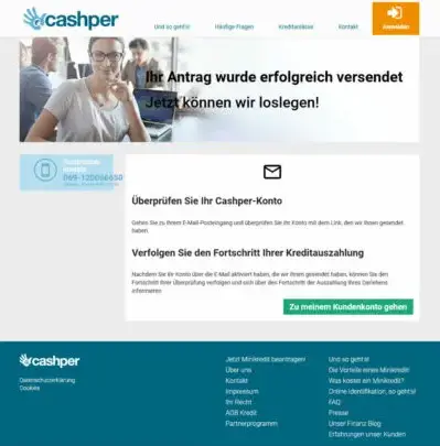 Nun bekommst du von Cashper per SMS und E-Mail eine Bestätigung deines Kredits. Hast du dich für die Express-Option entschieden, erhältst du dein Geld unseren Cashper Erfahrungen nach noch am selben Tag, sofern du den Kreditantrag von 16 Uhr gestellt hast. Alternativ erfolgt die Zahlung innerhalb von sieben Tagen auf das von dir angegebene Konto.