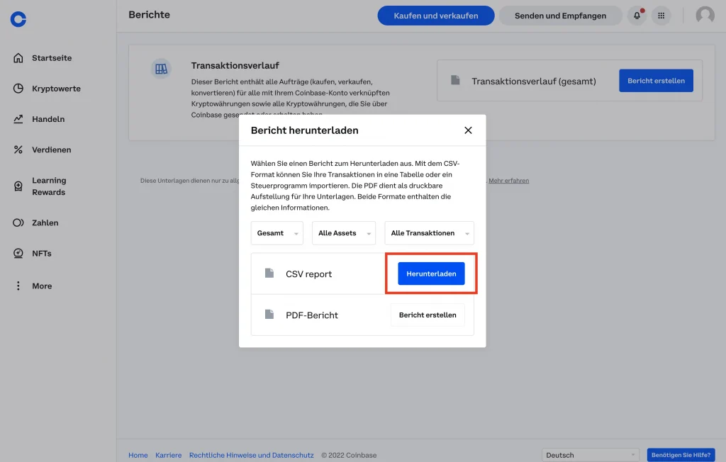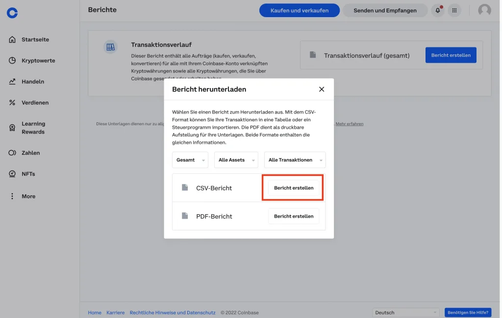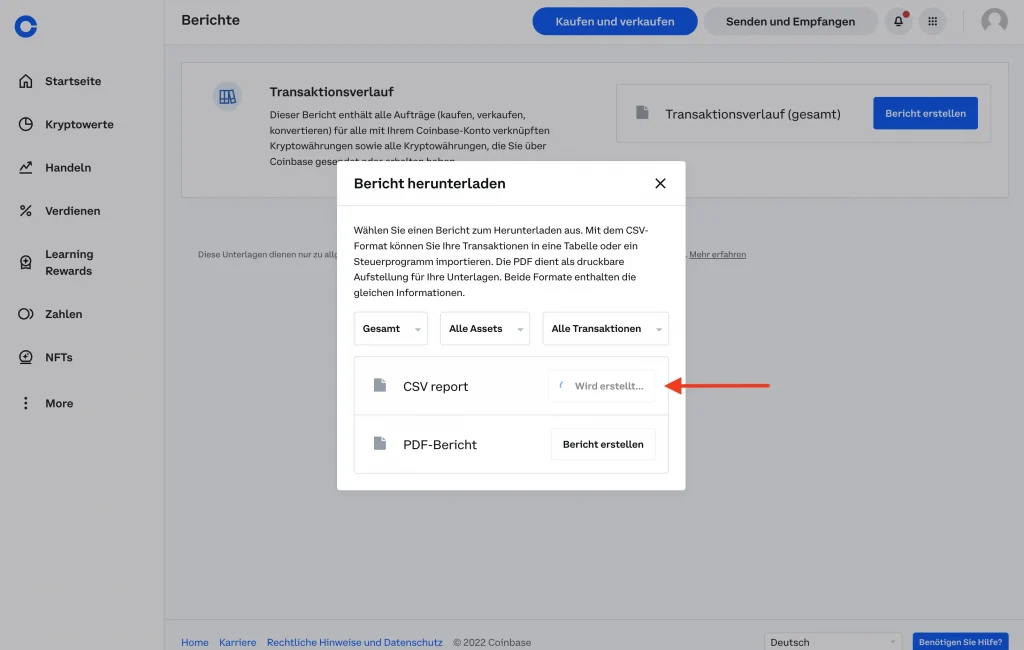 1) Coinbase per CSV für die Krypto-Steuern vorbereiten