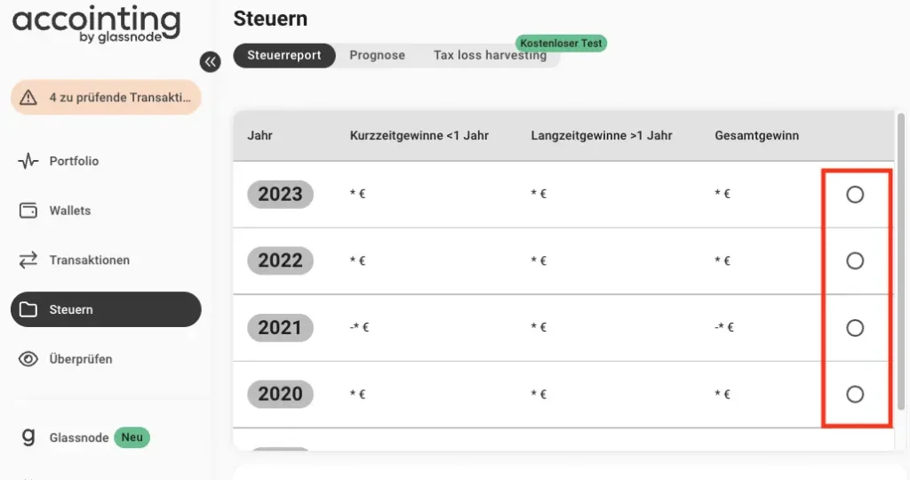 Schritt 5: Nach dem Klick auf “Bericht erstellen”, dauert es, je nach Umfang der Transaktionen, wenige Minuten bis der Bericht erstellt wurde.