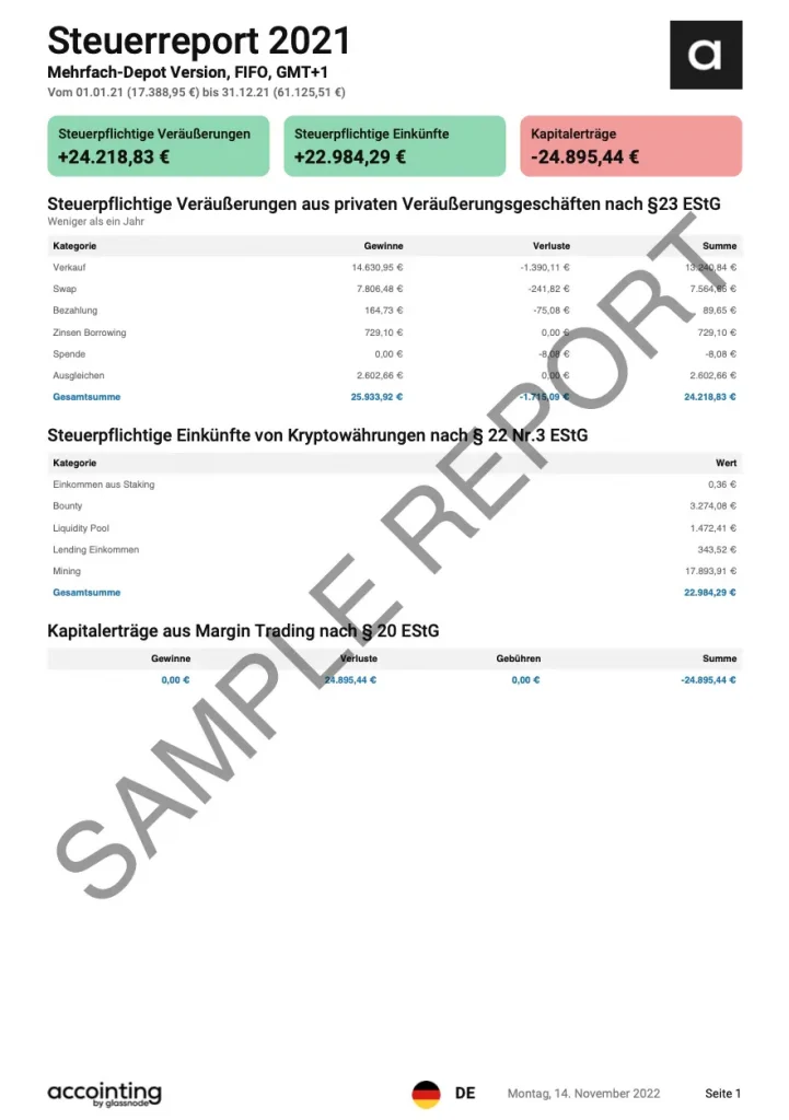 Der Tag des Zuflusses ist entscheidend für die Besteuerung von Staking-Belohnungen aus Coinbase Earn. Wenn du zum Beispiel am 1. Oktober Staking-Einnahmen von 0,5 ETH im Wert von 700 € erhalten hast, musst du Steuern auf den gesamten Betrag zahlen. Sinkt der Wert der Einnahmen vor Fälligkeit der Steuer auf 100 €, musst du dennoch Steuern auf den vollen Betrag von 700 € zahlen.
