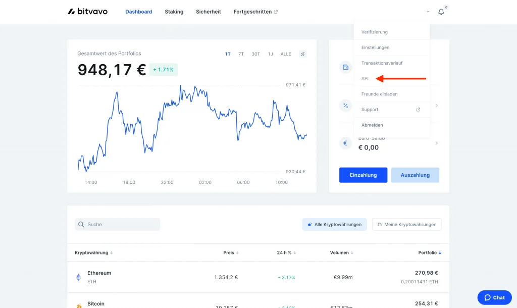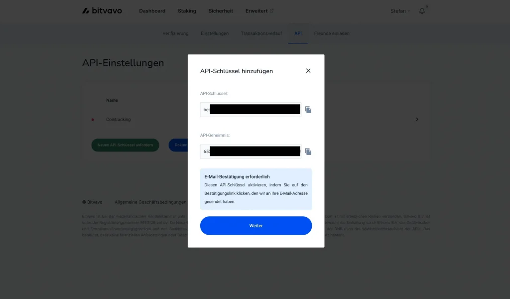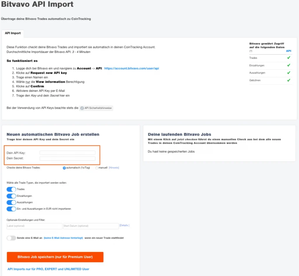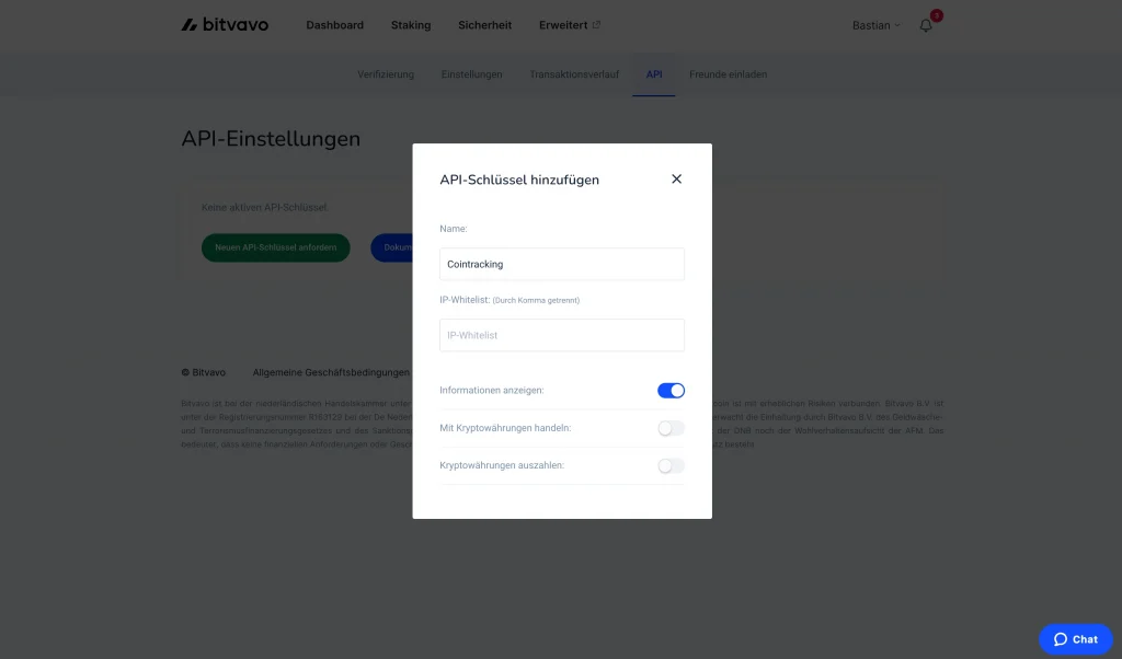 Beispiel: CoinTracking mit der Krypto Börse Bitvavo verbinden