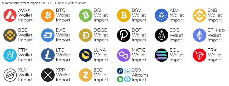 - Unterstützung von über 110 Kryptobörsen und Wallets