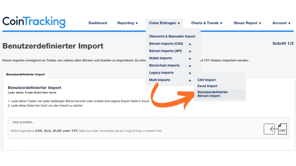 Wenn du bereits ein anderes Steuertool verwendest und zu CoinTracking wechseln möchtest, können auch diese Daten automatisch über den “Benutzerdefinierter Import” importiert werden.