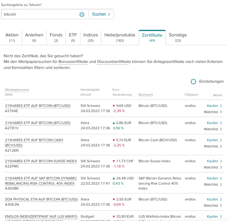 - Stattdessen können bei der Consorsbank Zertifikate auf Bitcoin und Co. gekauft werden.