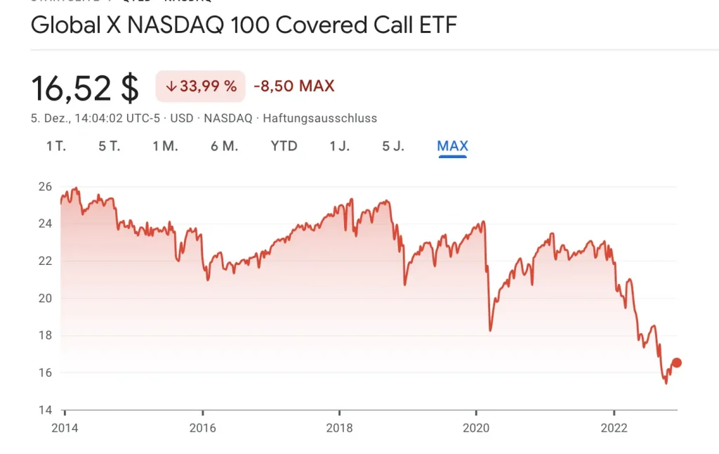 Covered Call ETFs sind bei vielen traditionellen Brokern noch schwer zu finden. Eine Ausnahme ist der Global X Nasdaq 100 Covered Call UCITS ETF (ISIN: IE00BM8R0J59) der in den USA unter dem Kürzel QYLD gelistet ist. Dieser ist aktuell einer der wenigen Covered Call ETFs, die auch bei gängigen Brokern hierzulande in der UCITS Variante handelbar sind.