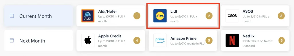 Wähle dazu in deinem Plutus Account den Lidl “Perk” aus, um den Cashback-Booster zusätzlich zum normalen Cashback beim Einkauf zu erhalten.