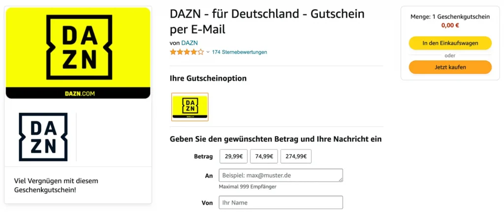 Geschenkkarten für DAZN können direkt online bei Lidl oder Amazon gekauft werden.