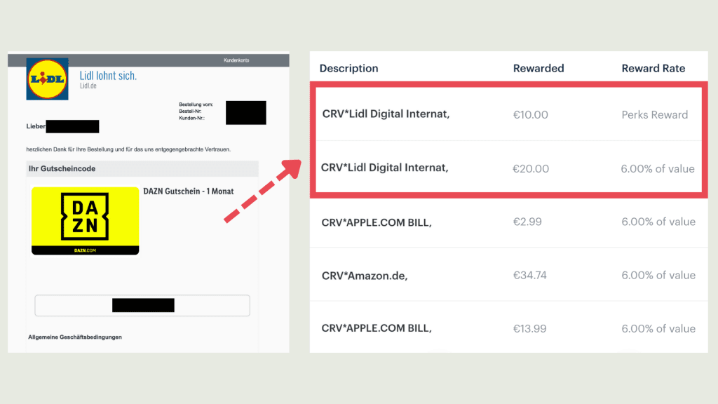 Hier der Beweis, wie wir bei jedem Kauf eines DAZN Gutscheins 10 € Vergünstigung + Cashback zurück bekommen: