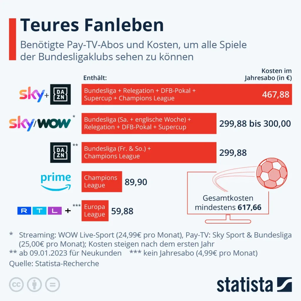 DAZN ist teuer, weil es eine Vielzahl von Live-Sportereignissen und -inhalten bietet, darunter Spiele von Ligen und Wettbewerben aus aller Welt. Diese Inhalte sind oftmals exklusiv und erfordern eine erhebliche Investition in die Rechte sowie die Produktion und Übertragung dieser Ereignisse. Sportlizenzen zählen zu den teuersten weltweit.