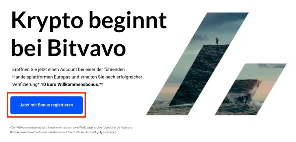 Schritt 1: Konto bei Bitvavo eröffnen – Gehe einfach zu Bitvavo* und melde dich an. Für die Anmeldung musst du deine persönlichen Daten angeben und dich verifizieren. Eine Identifizierung per Video-Ident ist nicht erforderlich. Für die erfolgreiche Verifizierung und Trade von min. 100€ erhältst du einen Bonus von 30 €.