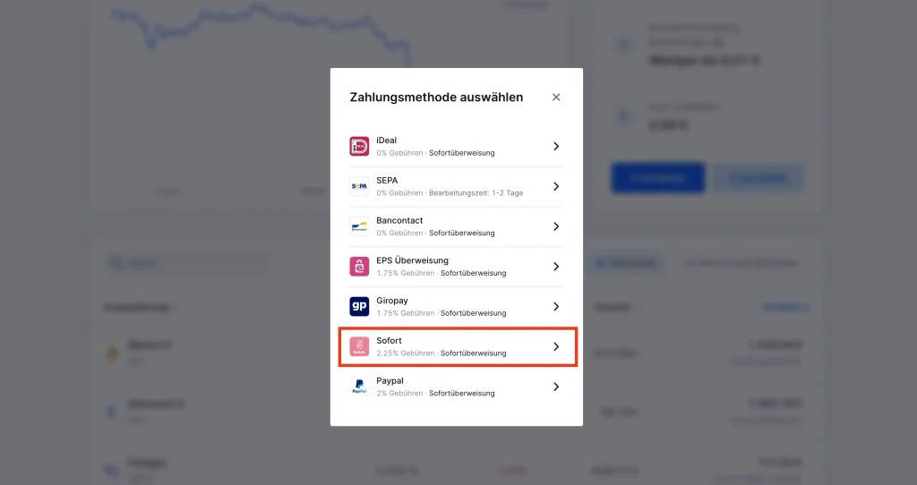 Du kannst Dogecoin und andere Kryptowährungen bei Bitvavo auch per Sofortüberweisung kaufen. Die Sofortüberweisung funktioniert im Wesentlichen genauso wie der Dogecoin Kauf mit Paypal. Dies bietet eine schnelle und sichere Methode, um sofort in die Welt der Kryptowährung einzusteigen.