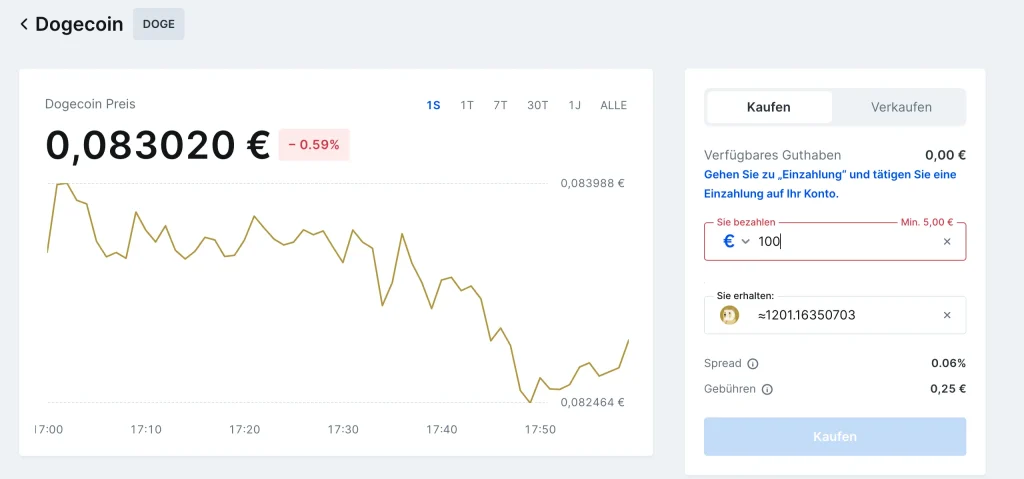 | Spread (Beispiel Dogecoin) | 0,03 – 0,14 % | ca. 2 % |