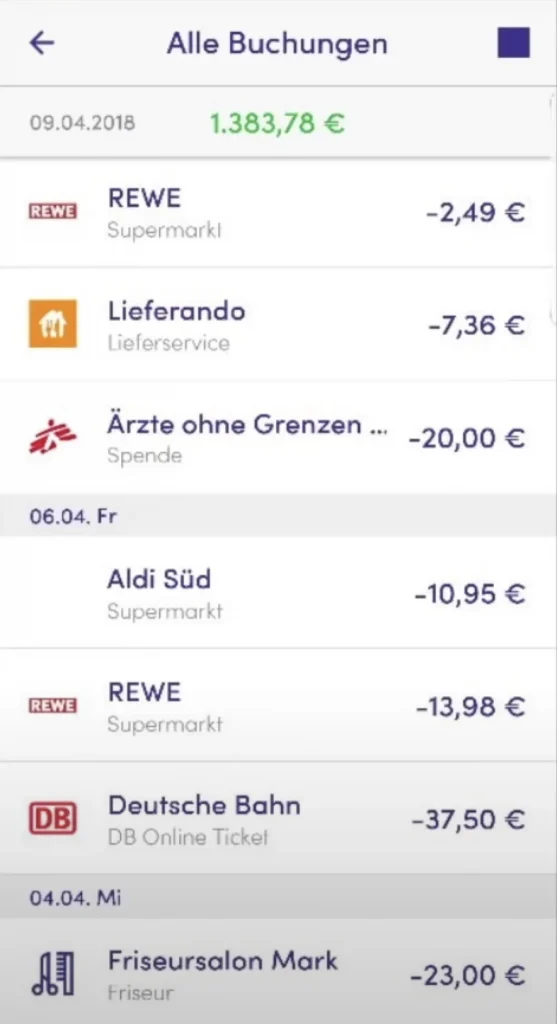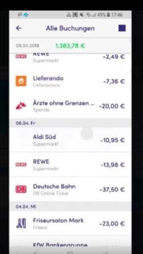 Die Übersichtlichkeit in “Alle Buchungen” sorgt dafür, dass man sehr schnell sehen kann, was ausgegeben wurde und ob man zu viel ausgibt.
