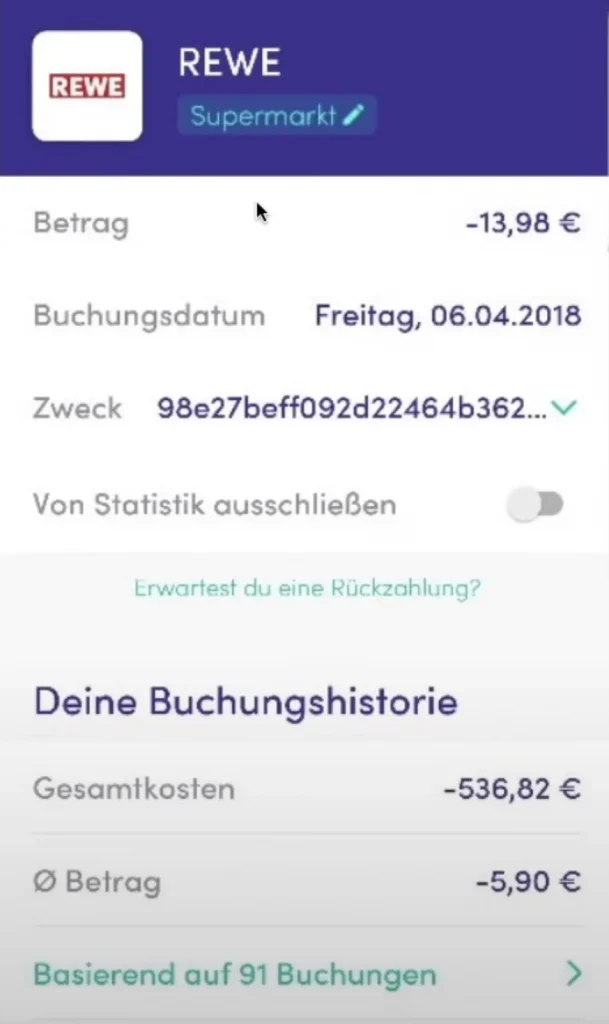 Beispiel Buchung der Finanzguru App anhand von Rewe: