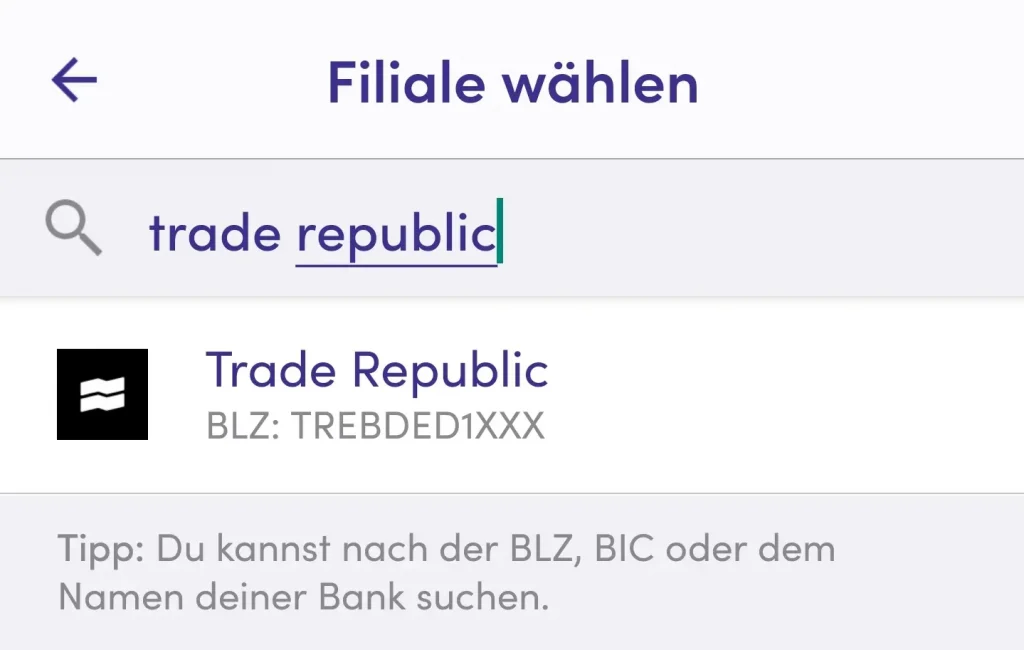 Schritt 3: Suche nach “Trade Republic”
