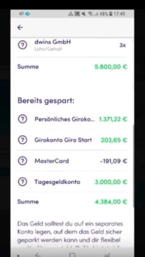 Was meine Finanzguru Erfahrungen bis hier hin angeht – finde ich ebenfalls gut: Das frei verfügbare Einkommen berechnet sich aus den Girokonten, da sind also keine Depots oder Sparkonten dabei.