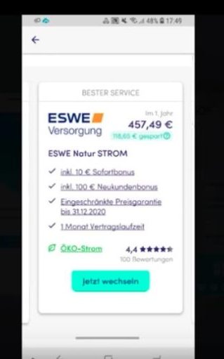 Das erste Angebot, womit Finanzguru wahrscheinlich auch Geld verdienen wird, ist den Stromvertrag zu wechseln.