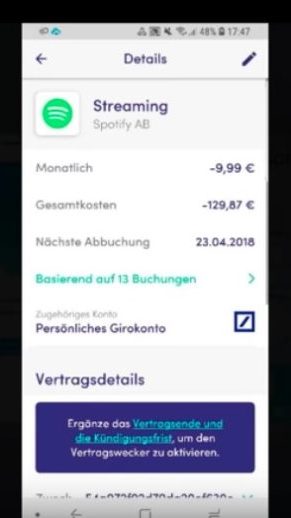 Das Gute ist: Überlege ich mir, dass mir ein Vertrag nicht mehr passt und ich ihn kündigen oder ändern möchte, kann ich durch einfaches Antippen verschiedene Vertragsdetails einsehen.