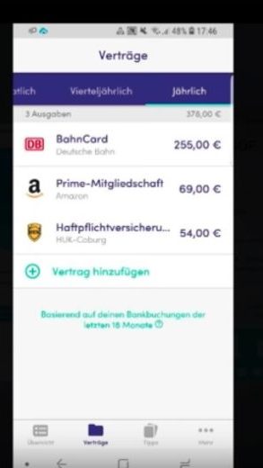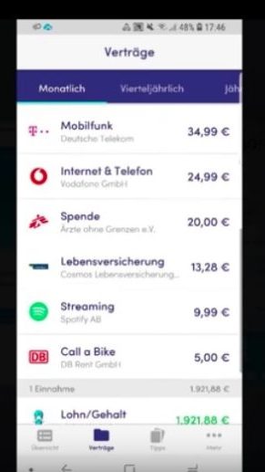 Nachdem ich die Verträge ungefähr 20 Stunden eingegeben habe – Nein Spaß, das Coole ist auch hier, dass die Finanzguru App sich die Verträge aus den verbundenen Kontendaten herauszieht.