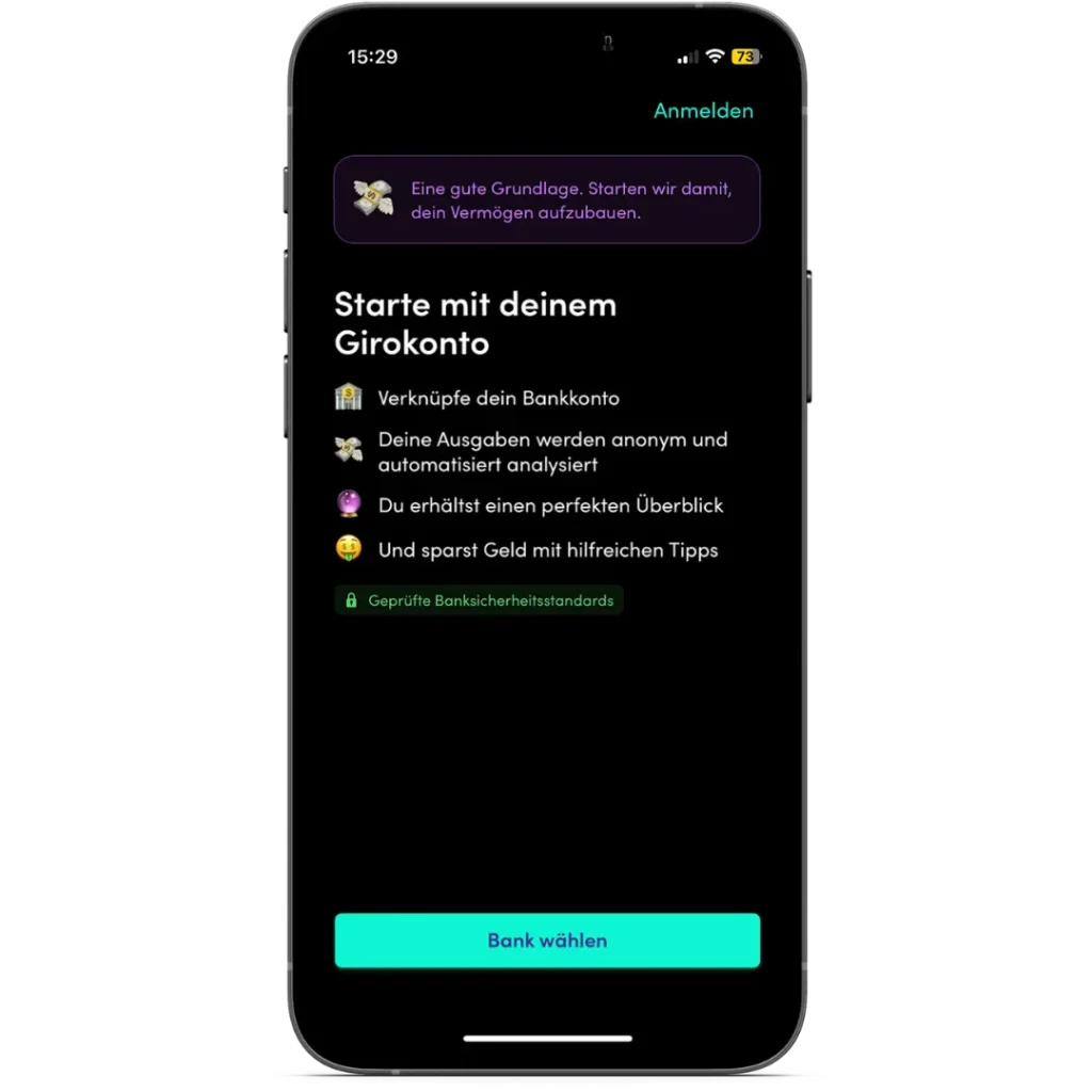 Schritt 2: Verknüpfe während der Registrierung ein Konto mit der Finanzguru App, das du tracken möchtest.