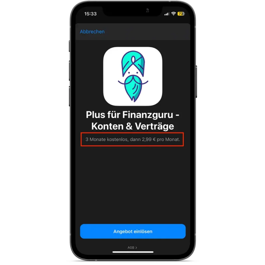 Fertig: Du erhältst nun Finanzguru 3 Monate kostenlos statt 2,99€ pro Monat und kannst die Plus Funktionen ausgiebig und in aller Ruhe testen. Mit den Plus Features von Finanzguru kannst du
