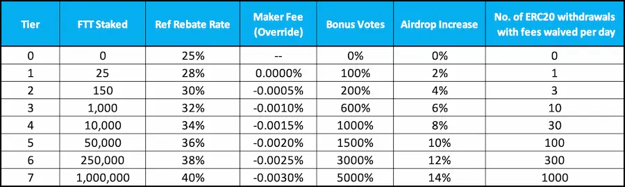 Natürlich hat auch FTX einen eigenen Token im Repertoire. Staked man ihn, lassen sich u.a. die Handelskosten noch einmal stark senken, doch es gibt noch weitere Vorteile.
