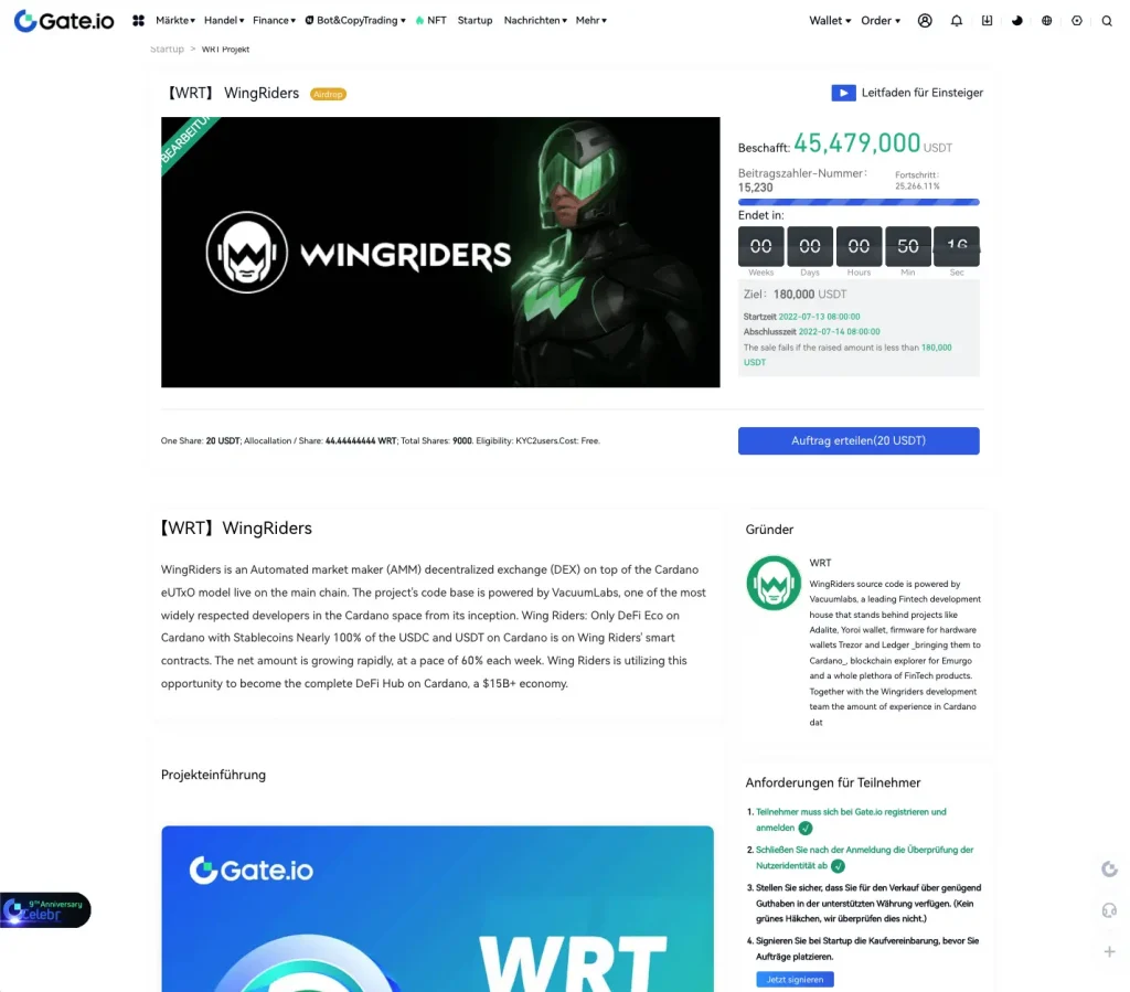 Jedes der Projekte hat eine eigene Infoseite, wo du dich über die Ziele und das Team informieren kannst. Zudem kannst du dir den aktuellen Fortschritt der IEO Auktion anzeigen lassen und wie viel bereits eingenommen wurde.