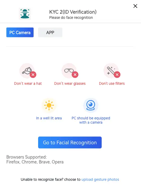 Nun müssen wir im nächsten Schritt noch ein kurzes Selfie uploaden. Ich empfehle das direkt über die Gate.io App zu machen. Über den Browser hat es in unserem Test nicht sofort geklappt.