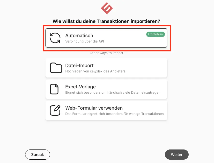 - Automatische Erfassung von Transaktionen über API Schnittstelle (z.B. für Cointracking)