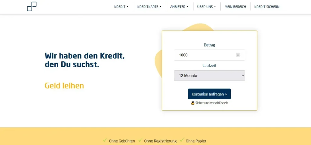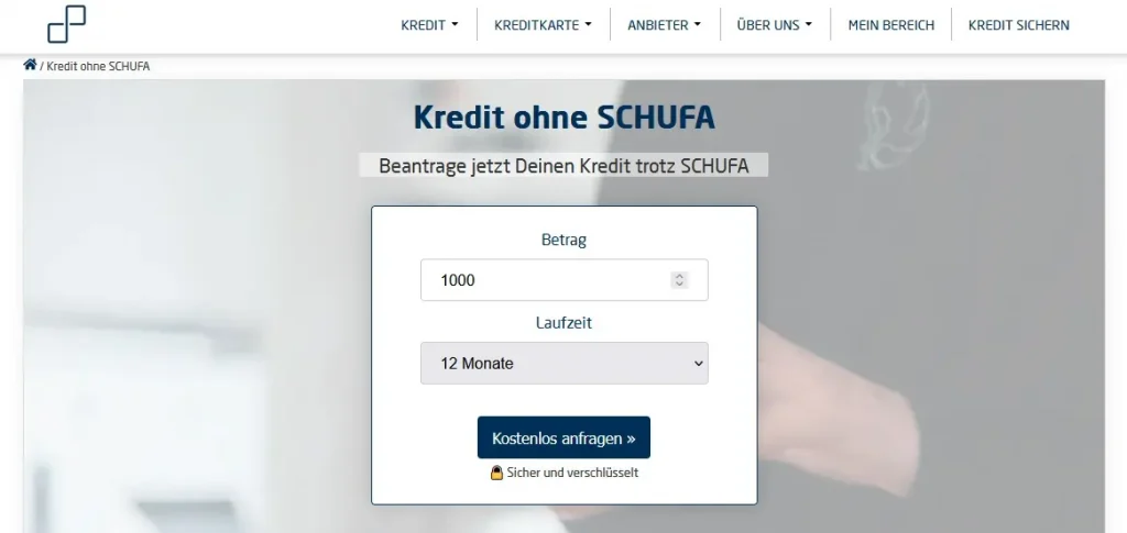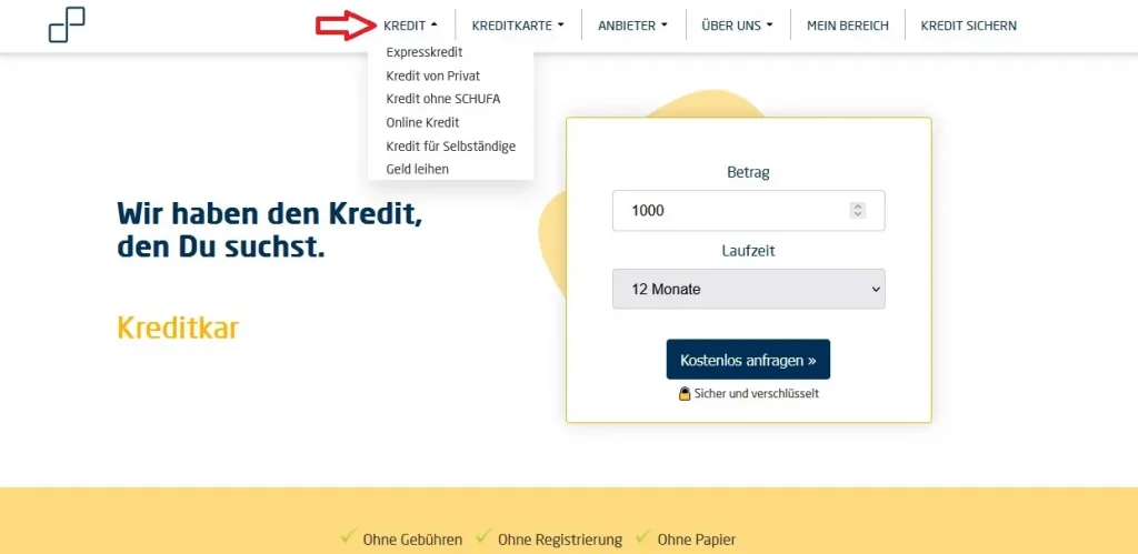 Suchst du nach einer bestimmten Art von Kredit – z.B. einem Kredit ohne SCHUFA oder einem Kredit von Privat – kannst du über einen Klick auf den Reiter “Kredit” zwischen verschiedenen Kredit-Optionen wählen.