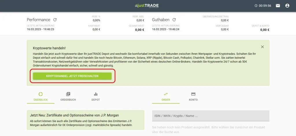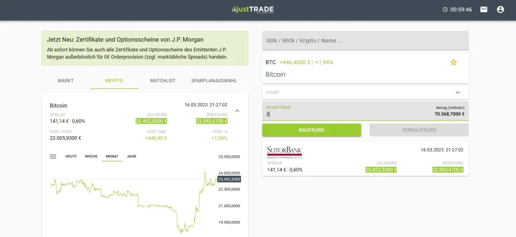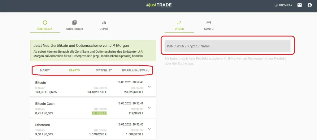 justTRADE Krypto: Ein Überblick über das Angebot