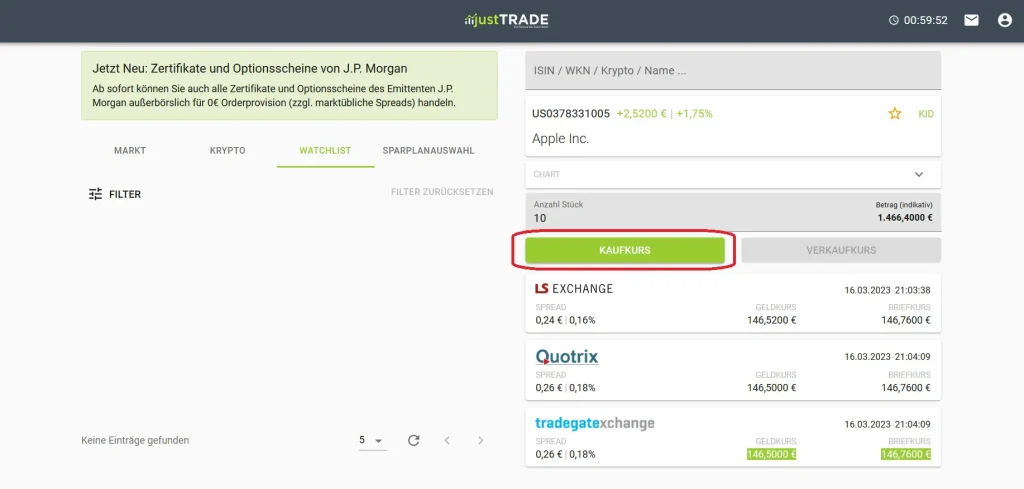 - justTrade bietet den Handel mit Aktien, Kryptowährungen, ETFs sowie Zertifikaten.