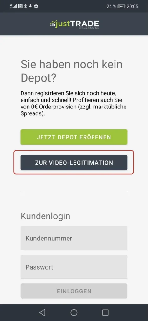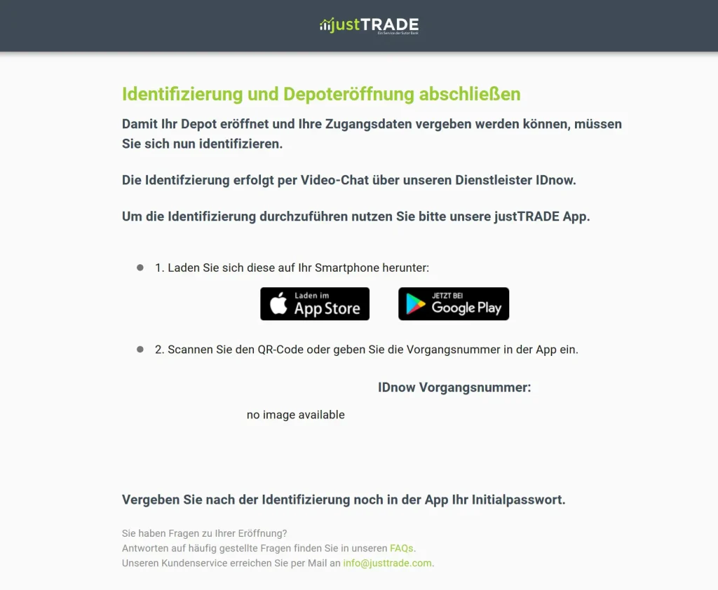 Schritt 3: Identifizierung. Als nächstes erfolgt die Identifizierung via Video-Chat. Hierfür musst du dir, falls noch nicht geschehen, die justTRADE App auf dein Smartphone herunterladen.