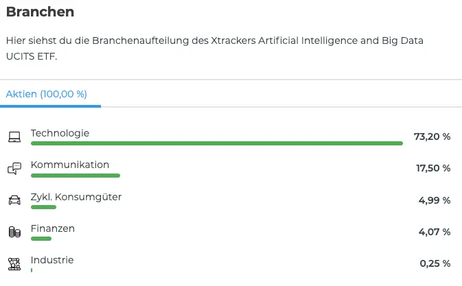 Wenn du aber davon überzeugt bist, dass künstliche Intelligenz in Zukunft eine wichtige Rolle spielen wird und die Branche insgesamt stärker wächst als der Gesamtmarkt, können KI-ETFs das Portfolio ergänzen. Damit bist du auf jeden Fall besser diversifiziert als mit dem Kauf von Einzelaktien aus diesem Bereich.