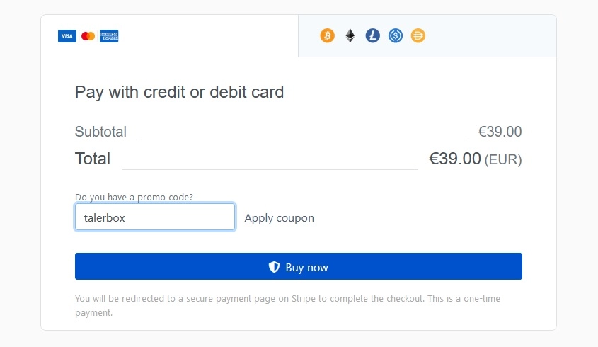 Alternativ steht es dir auch offen, mit Kryptowährung zu bezahlen. Koinly akzeptiert Bitcoin, Ethereum, USD Coin und Dai.