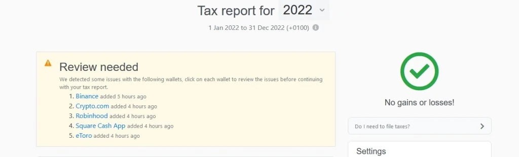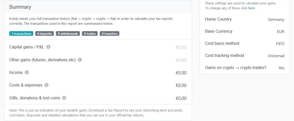 Fazit: Unser Koinly Review fällt hier positiv aus. Es ist sehr leicht, einen umfassenden Steuerreport zu erstellen.