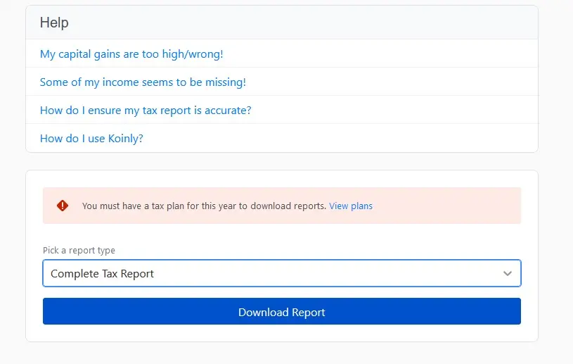 Möchtest du jedoch Steuerberichte herunterladen oder in Steuerprogramme exportieren, musst du zu einem der gebührenpflichtigen Modelle wechseln. Koinly bietet vier unterschiedliche Varianten an: