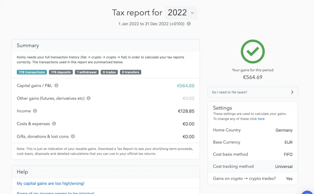 Koinly hilft dir bei der automatischen Erstellung deiner Krypto-Steuern. Dazu erstellt das Steuer-Tool einen Steuerbericht für alle Krypto-Transaktionen, der den geltenden Steuersätzen und -regeln im DACH-Raum entspricht.